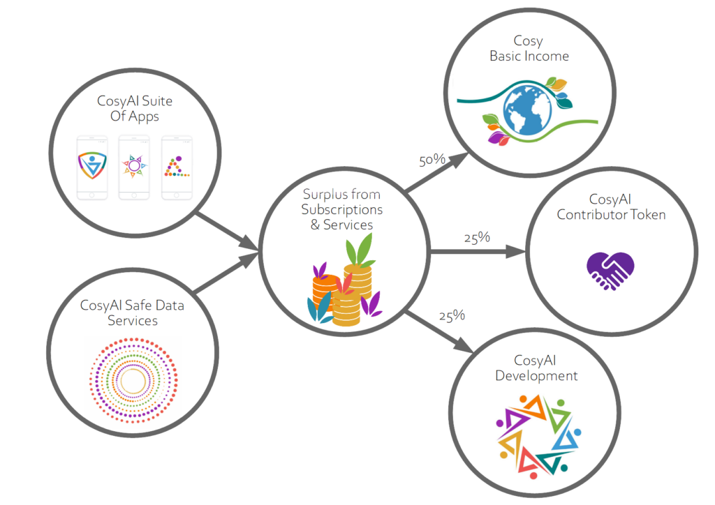 A portion of the surplus generated by the CosyAI cooperative will be directed into a basic income fund, which will automatically distribute payments to accredited contributor-members.